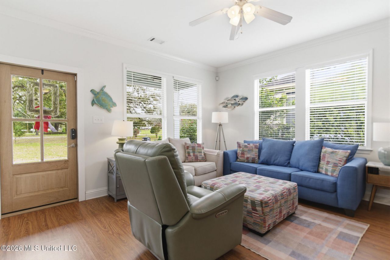 Welcome to the heart of Gulfport's vibrant Second Street District, one of the most walkable coastal neighborhoods on The Mississippi Gulf Coast. Just minutes from the beach, Gulfport Harbor, Jones Park, and the Mississippi Aquarium. Homes in the walkable Second Street District rarely come available in this condition and at this price! A move-in ready, fully furnished, beach cottage in immaculate condition that places you near some of Gulfport's favorite restaurants and hot spots including Shaggy's, Salute, and The Chimneys, and The Almanett Hotel right around the corner. Enjoy morning coffee on the covered front porch before walking down to the beach. Host your friends for pre-game before riding bikes down to the many events (such as Cruisin' the Coast) that take place in Jones Park and The Gulfport Harbor; you can even cruise to downtown and join the rest of the bunch for some fun. Or round the gang up on the golf cart and sing your heart out at kareoke night at The Almanett. The house is ready to move in! Built in 2010 and thoughtfully designed for easy coastal living, inside you'll find a modern kitchen with granite countertops open to the living room, wood finished floors (no carpet), ceiling fans, large closets and natural light throughout. Outside, enjoy a private courtyard, covered front porch, and landscaped yard, perfect for relaxing after a day at the beach or entertaining friends before heading out. With HardiPlank siding, architectural shingles, and low-maintenance construction, this home is designed to spend less time on upkeep and more time enjoying the coast. The Second Street District is one of Gulfport's most beloved neighborhoods, where neighbors are often out walking, biking, and enjoying the lively coastal atmosphere.Imagine living here and being able to walk down to the water for sunset and grab dinner at Salute on the way home.Ideal as a primary residence, weekend retreat, or investment near Gulfport's growing downtown waterfront district, 1619 Nichols Court delivers location, lifestyle, and coastal charm in one exceptional package.